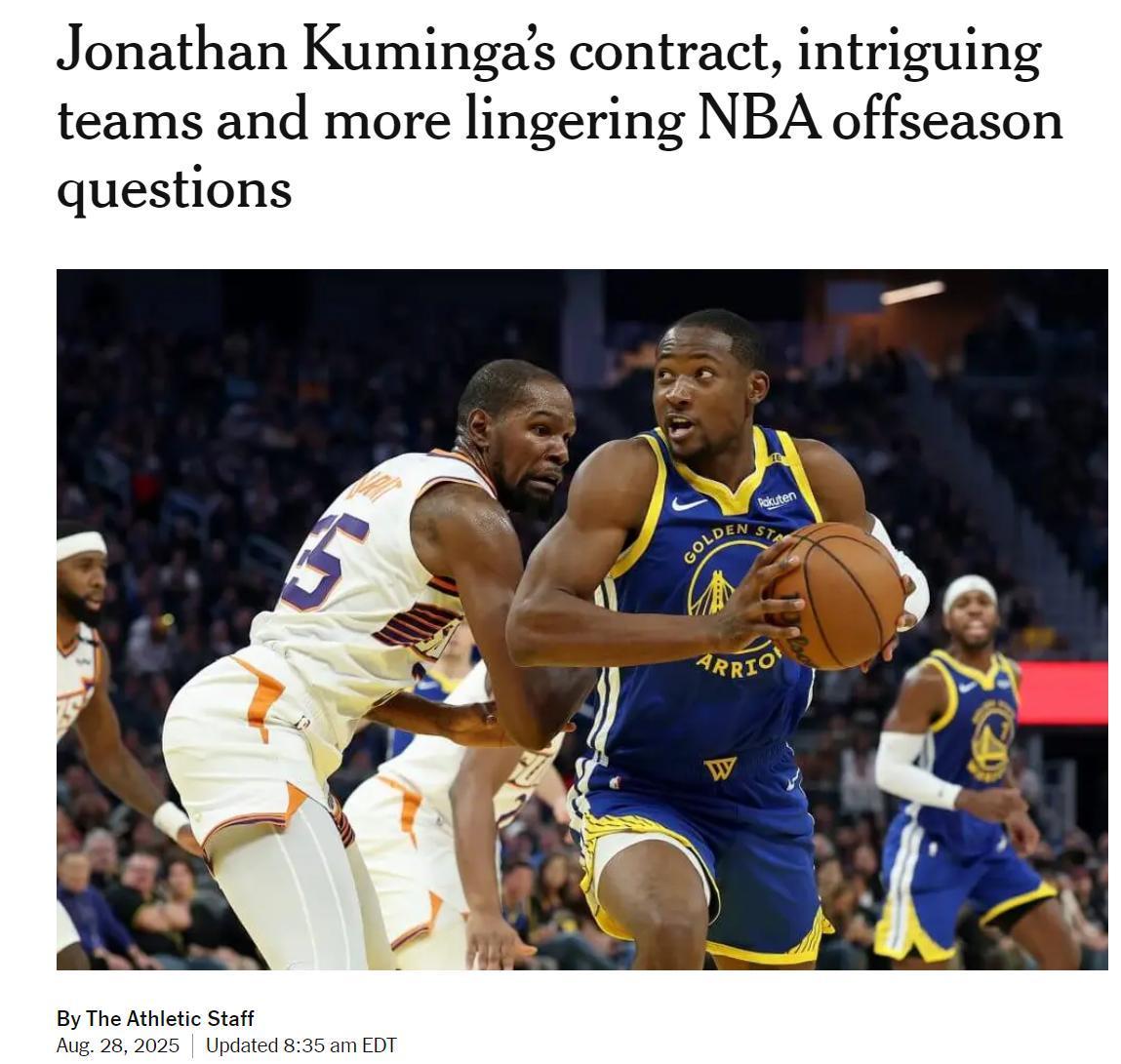 相比于过往几个赛季,今夏各支球队的引援、签约与交易工作完成得十分迅速,几乎没有太多漫长的拉锯战与谈判,勇士与库明加算是为数不多的肥皂剧之一。